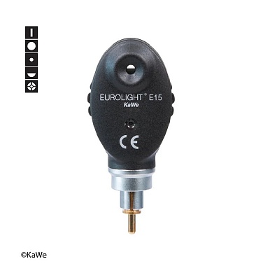 KaWe EUROLIGHT E15 — профессиональный прямой офтальмоскоп для детального клинического исследования переднего и заднего отрезков глаза. Применяется в офтальмологических кабинетах, поликлиниках, стационарах и медицинских учебных учреждениях. Наличие 5 диафрагм значительно расширяет диагностические возможности прибора по сравнению с базовой моделью E10.